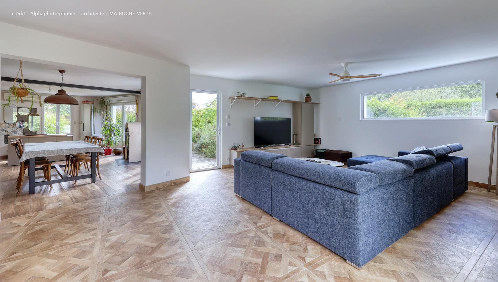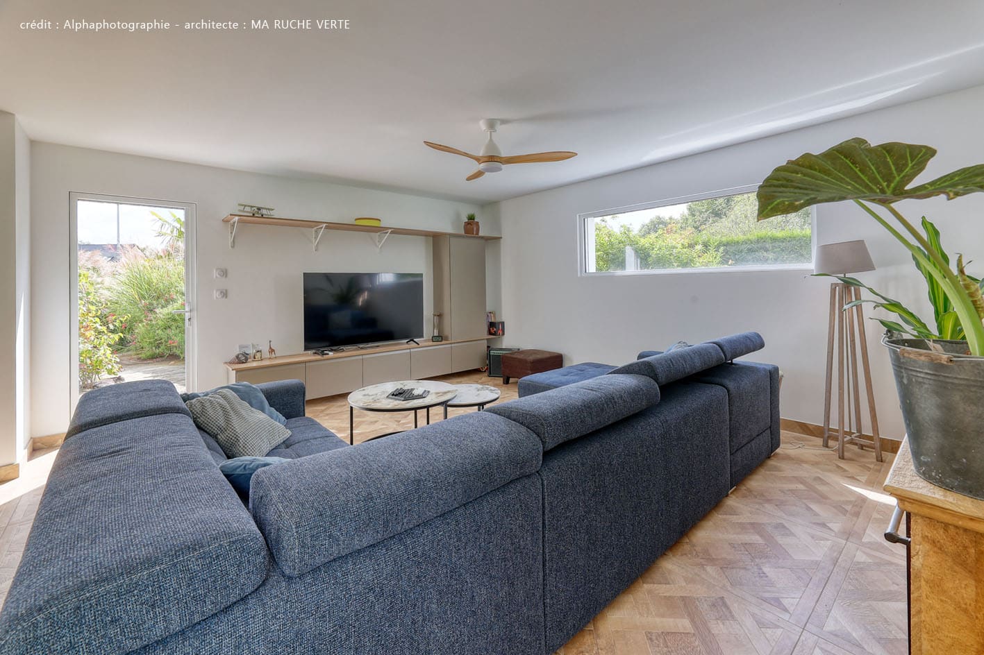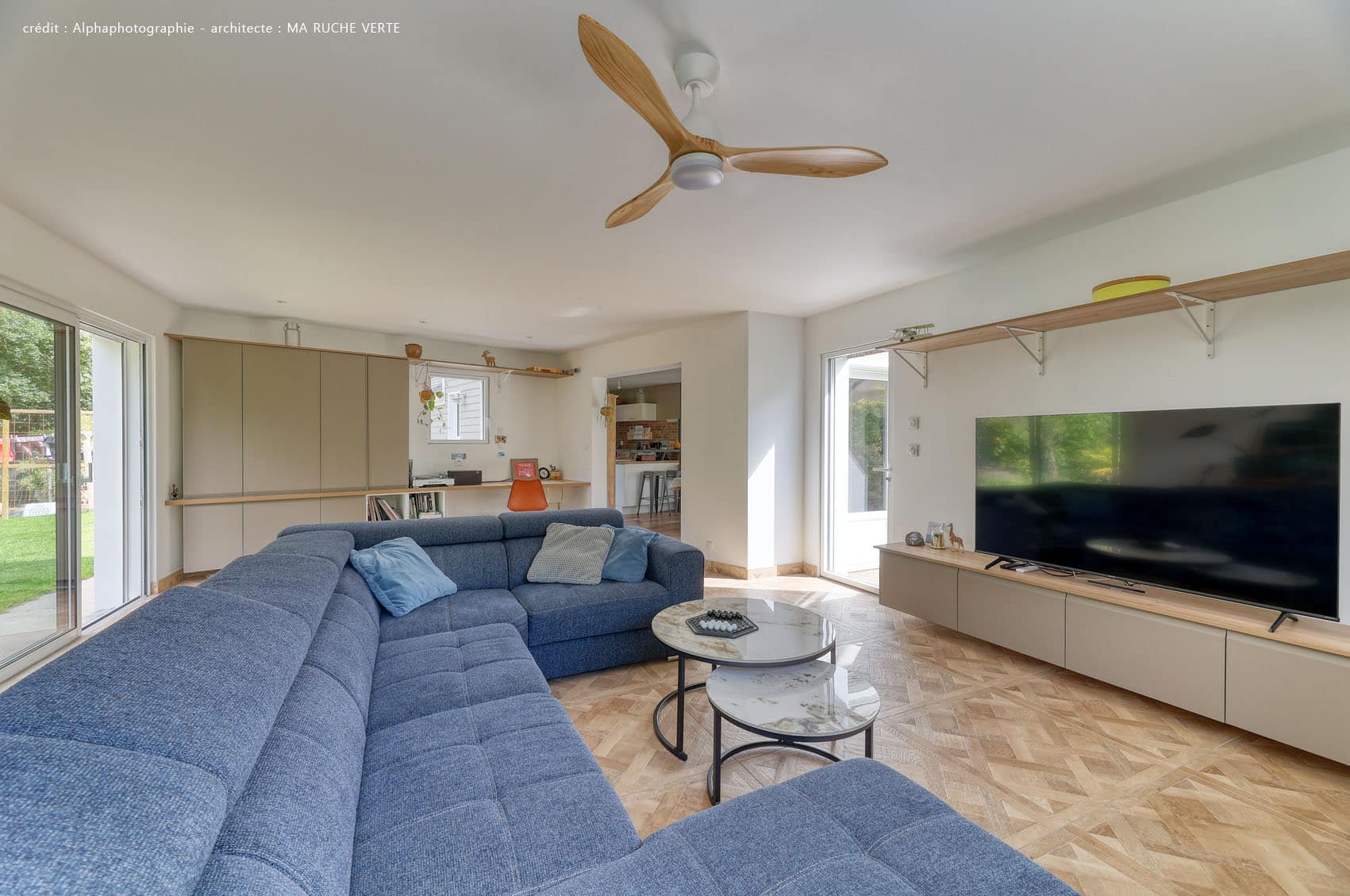 Avec cette extension, la maison se transforme pour offrir un nouveau volume généreux et confortable, pensé pour accompagner la vie de famille au quotidien.